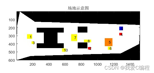 步骤一:为10个设施在场地中随机分配初始位置和变化速度