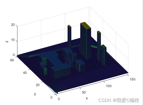 步骤五:输出迭代过程曲线图、最终10个设施的形心位置、长和宽、道路中心线的方程、以及最终场地布置的三维图(包括场地范围、道路、固定建筑以及设施,固定建筑与设施用不同颜色表示)
