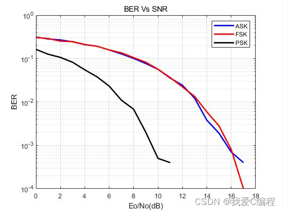在数字通信的三种调制方式(ASK、FSK、PSK)中, 就频带利用率和抗噪声性能(或功率利用率)两个方面来看,一般而言,都是PSK系统最佳。所以PSK在 中、高速数据传输中得到了广泛的应用。