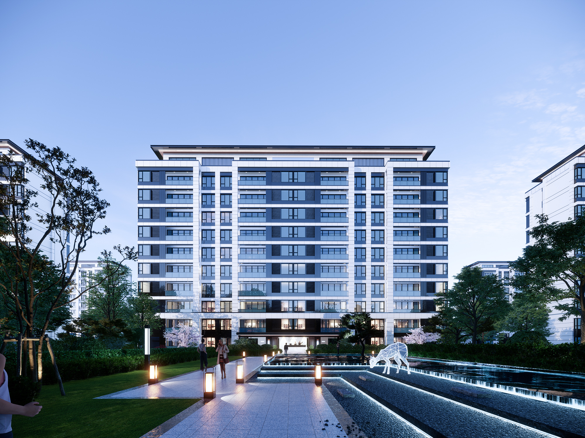 Enscape新中式风格小高层住宅夜景场景