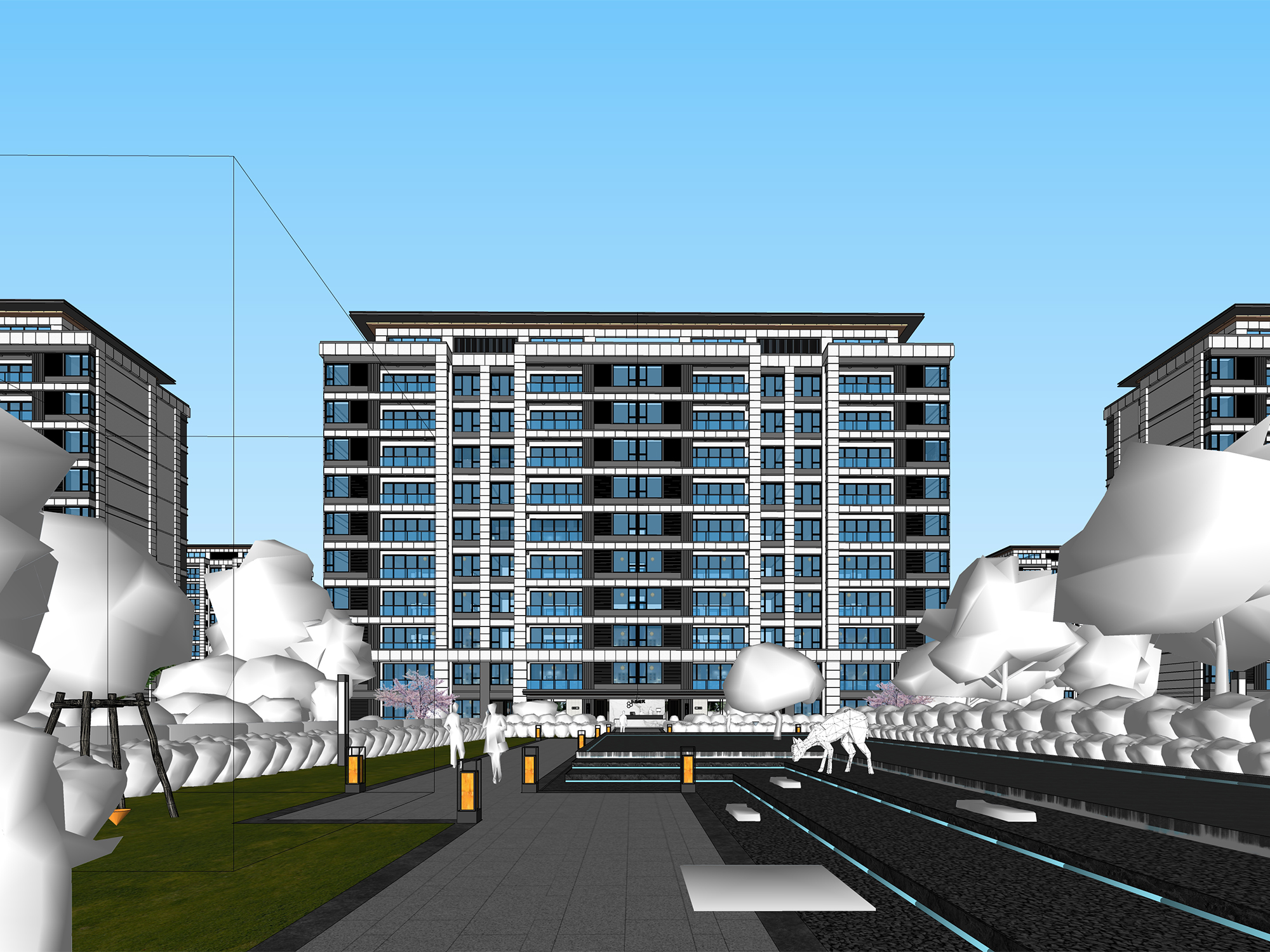 Enscape新中式小高层住宅夜景模型源文件分享。