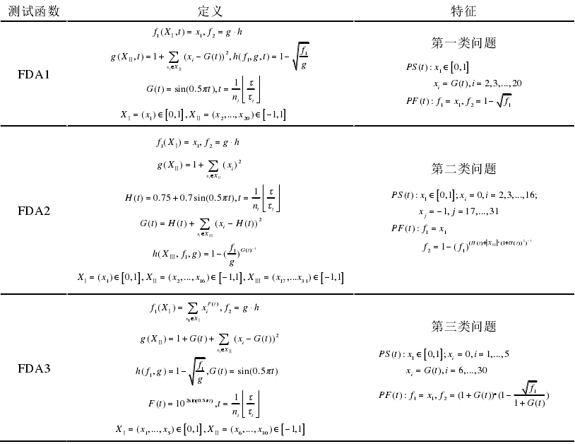 本文选取5个传统典型动态标准测试问题FDA1~FDA5,其详细信息如下: