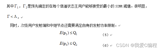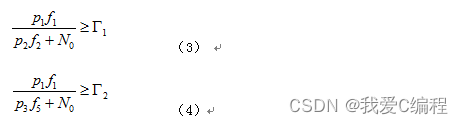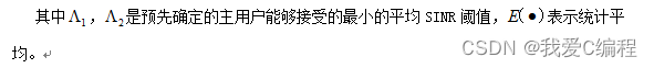 为了保护主用户的实时传输,使其不会因为最大化次级用户的吞吐量而被中断,确保主用户的传输质量,进而保证主用户的业务质量,本文也对主用户接收端的每个传输状态的SINR强加一个约束。这个约束称为谷值SINR约束,表述如下: