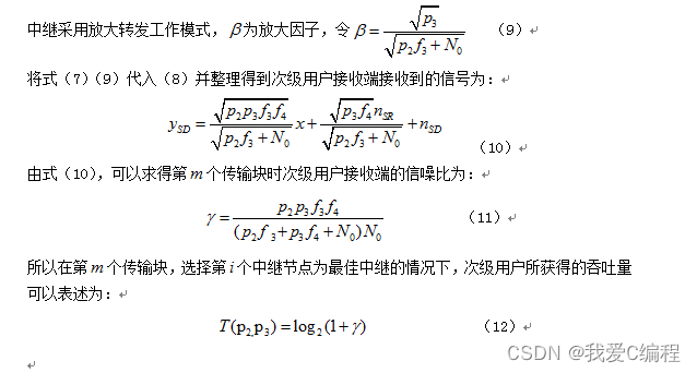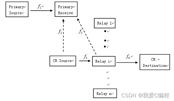 在现有捕获信道状态信息的技术支持下,假设次级用户能够获取完美的信道状态信息,即次级用户发射端和中继节点能通过不同的方法获取信道即时功率增益,从而使次级用户发射端和中继节点能够实现发射功率的最优分配以获得次级用户的最大吞吐量。