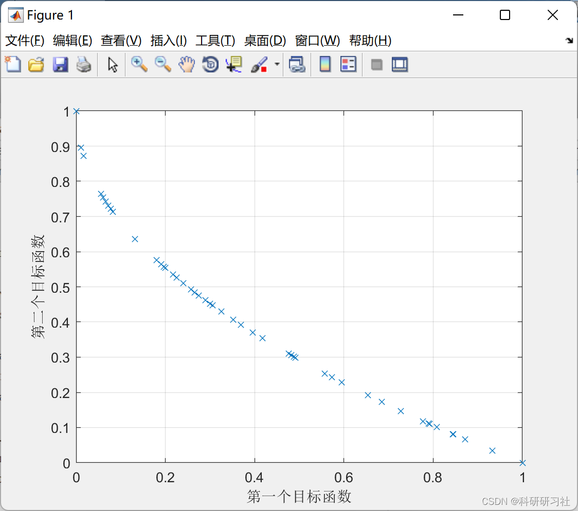 PESAII为求解多目标问题的一种经典进化算法。该算法设置了一个外部种群和一个内部种群。进化的时候,将内部种群中的非支配个体加入到外部种群,并淘汰外部种群中的支配个体。当外部种群数目达到上限的时候,采用删除外部种群中拥挤系数最小的个体;当个体的拥挤系数相同的时候,随机删除一个,重复该过程直到种群数目满足上限。每次进化,都会将内部种群清空,然后从外部种群中选出个体,按照一定的概率进行交叉,变异得到新的个体,并将这些新的个体加入到内部种群。该算法最终的解就是外部种群的个体,即若干个的Pareto最优解,用户可以根据需要选择适当的解。详细介绍见第4部分。