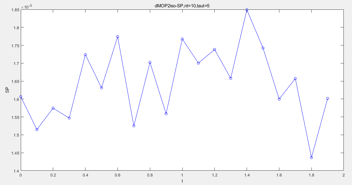 DMODOA求解dMOP2iso的多样性度量指标SP随时间的变化曲线: