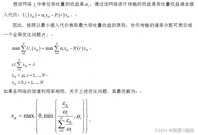 其中,速率分配就是把数据流拆分到多个网络进行协作传输,相关研究已引起不少学者的关注。文献中采用博弈论的方法并结合网络传输能力和公平性原则进行资源分配。上述研究以网络吞吐量最大为优化目标,没有考虑网络的接入时间代价(接入机制决定) 和不同网络资源利用效率的差异。 此外,当请求传输的业务流速率较小时,要求所有网络参与协作传输是低效的,此时数据包分拆和重组的代价不能忽略。使用基于供需关系的代价函数来实现多视频,流的速率分配L 网络资源的供求关系决定了它们在接入难度资源利用效率等方面也不尽相同。