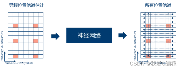 如下图所示,经过训练的神经网络以从导频符号所估计的结果作为输入,以所有符号上的信道频率响应作为输出。