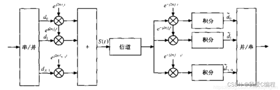 一个OFDM符号之内包含多个经过相移键控(PSK)或者正交幅度调制(QAM)的子载波。