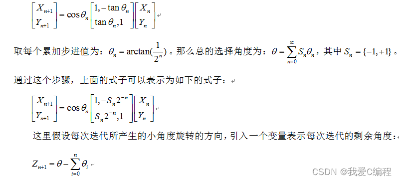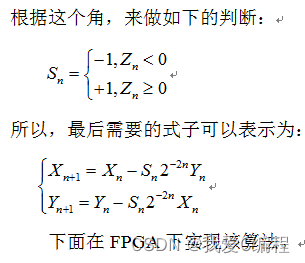 实现NCO的另一种方法是采用基于坐标旋转数字式计算机的算法,即CORDIC算法,基本思想是采用逐次逼近的方法实现三角函数的计算。该算法的突出优点是,仅做加减和移位运算,结合流水线,可以实现每一个时钟周期输出一个经过n次迭代的结果。