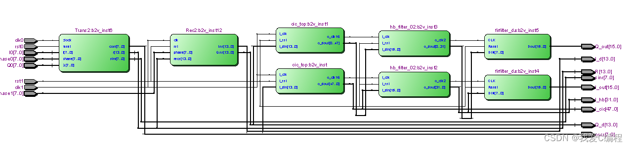 我们首先在FPGA中设计这么一个结构得到中频测试信号,然后使用这个测试信号进行下变频测试。