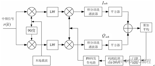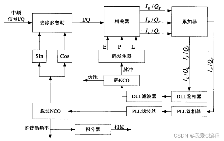 通过捕获模块获得初始的频偏值,然后进行载波同步。与此同时,通过码同步,完成相位的捕获。最后进入跟踪阶段。