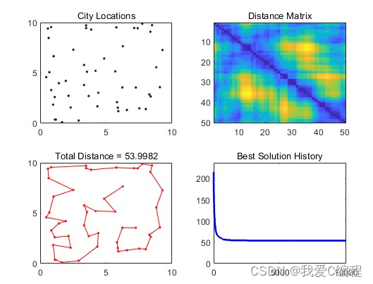 遗传算法的基本思想正是基于模仿生物界遗传学的遗传过程。它把问题的参数用基因代表,把问题的解用染色体代表(在计算机里用二进制码表示),从而得到一个由具有不同染色体的个体组成的群体。这个群体在问题特定的环境里生存竞争,适者有最好的机会生存和产生后代。后代随机化地继承了父代的最好特征,并也在生存环境的控制支配下继续这一过程。群体的染色体都将逐渐适应环境,不断进化,最后收敛到一族最适应环境的类似个体,即得到问题最优的解。要求利用遗传算法求解TSP问题的最短路径。