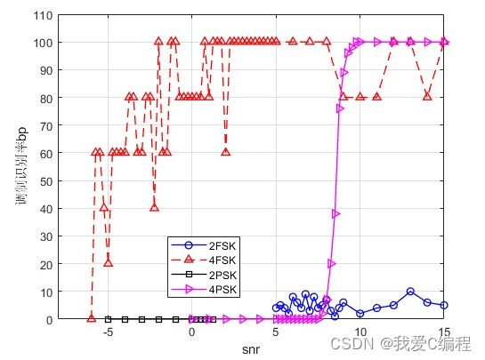首先区分大类的话采用的基于功率谱提取的len参数(峰值频率间隔),用峰值个数来代替,这样能很好的区分大类把MFSK和MPSK信号区分开。