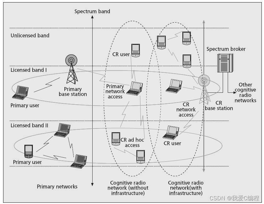 认知无线电(CR)的概念来自Joseph Mitolo博士1999年的开创性工作。它自适应地调整内部通信机制,通过学习,了解等实时变化特定的无线电操作参数(功率,载波调制和编码等),适应外部无线电环境,并独立空闲频谱它可以被搜索和使用。这有助于用户选择用于无线传输的最佳和最合适的服务,甚至允许基于现有或未来的无线电资源来延迟甚至主动地开始传输。