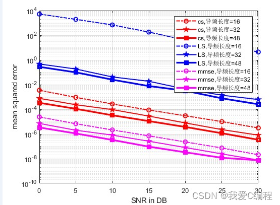 ∈RN为投影系数,但仅有K个非零元素(K< 在CS理论中,对需要重构的信号x的采样,实际上是利用M×N的矩阵 的M个行向量对投影系数向量的一个线性投影过程。信号x经过线性变换后,输出的观测信号y包含M个参数,每一个参数均为信号x的一个观测量,即: LS 在LS估计中,我们使用Y和Y‘’来进行计算,估计出的结果是H’而并非H,若估计的结果H’使得Y’与Y误差最小,则能得到的结果应该是H’与H(带三角)的误差最小,但H(带三角)也不是真实的信道矩阵,其内还包含了一个误差项Z/X,因此对于LS信道估计而言,其结果的精度是受这个误差项影响的,而这个误差项概括来说就是和SNR相关,SNR越大,误差项越小,LS估计精度越高。现依据LS最优准则对上式中H’进行估计,首先给出LS准则的代价函数 MMSE 依旧是给出假定的信号关系式 Y为接收数据(包含多径)大小为Nx1。 X为先验信息,大小为NXM。 h为信道冲激响应,大小为MX1。 Z为噪声,大小为NX1。 MMSE信道估计的代价函数为