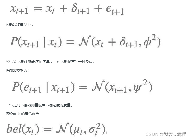 卡尔曼滤波需要满足以下三个前提假设,才能保证在任意一个时刻t的置信度bel(x(t))都是正态分布: