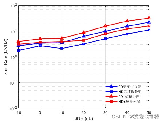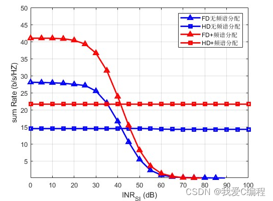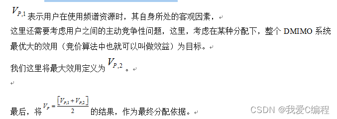 假设有M个用户均为MIMO Full Duplex,N个频率,1 由于在一个MIMO系统中,用户数量M大于可用的频谱个数N,因此,必有一部分用户存在频谱共享的问题。目前,现有的关于频谱分配的方法主要有基于竞价的分配方法,基于博弈论的分配方法,现有资料,主要都是这两种方法。下面针对这个问题,提出如下的改进方案: 这个改进方案,命名为基于改进遗传优化算法的多因素加权竞价博弈频谱分配算法。 这里,有别于传统的频谱分配方法,这里的分配方法,考虑了多种因素,我们分别假设为y1,y2,y3,。。。。。yn,并通过遗传优化算法,计算一种分配方案,即M个用户分配到N个频谱上, 分别计算以不同因素进行划分所得到的效益值V1,V2,V3,。。。。。Vn,,最后将这将这n个因素进行加权,得到其综合效益值: 根据遗传优化算法流程可知,其详细步骤如下所示: 步骤一:选择问题解的一个编码,给出一个有N个染色体的初始群体。编码的主要功能为确定用何种码制,然后将问题参数编码形成基因码链,每一个码链代表一个个体,表示优化问题的一个解。 根据编码方式不同可以分为二进制编码和实数编码两种类型,其中二进制编码的优势在于编码方式简单,便于遗传算法的交叉和编码操作。 步骤二:对群体中的每一个染色体,计算它的适应函数值。适应函数值为群体进化时的选择提供了依据,一般来说适应度越高,解的素质越好。适应度函数可以根据目标函数而定。 步骤三:若停止规则满足,则算法停止,否则计算概率P,并以此概率分布,从旧的种群pop(t)中随机选取N个染色体构成一个新的种群。选择操作常见的操作方式有比例 选择和排序选择方式。 步骤四:通过交叉,得到N个染色体的交叉集合。交叉的主要功能从种群中随机选择两个染色体,按一定的概率进行基因交换,交换位置的选取是随机的。 竞价和博弈相结合的联合分配方法; 值最大的用户,有先分配频谱资源,值最小的,则根据实际频谱资源情况,进行共用某一相同的频谱资源。
