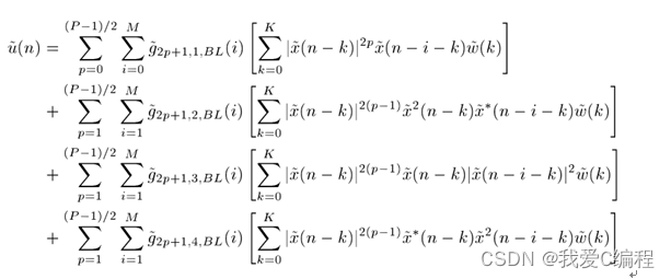 Volterra级数即含记忆的泰勒级数,其数学公式与泰勒级数及其相似,Volterra 级数模型的输出信号,其计算公式是通过输入信号的幂次方来表达的。Volterra级数与泰勒级数不同之处在于Volterra级数具有延迟功能,因此Volterra级数更适合应用在具有记忆效应的功率放大器线性化处理过程中。