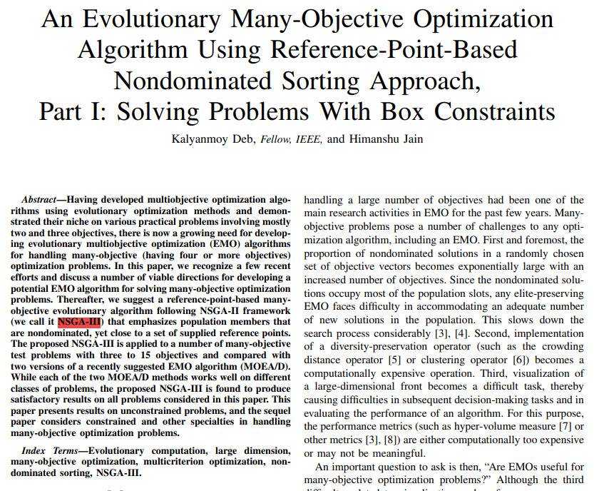 NSGA-III算法由Kalyanmoy Deb和Himanshu Jain于 2014年提出。