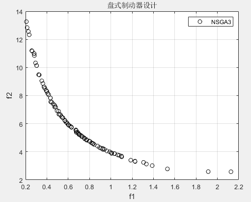 将NSGA-III用于求解9个多目标测试函数(ZDT1、ZDT2、ZDT3、ZDT4、ZDT6、Kursawe、Poloni、Viennet2、Viennet3)以及1个工程应用(盘式制动器设计)上实验,并采用IGD、GD、HV、SP进行指标评价。