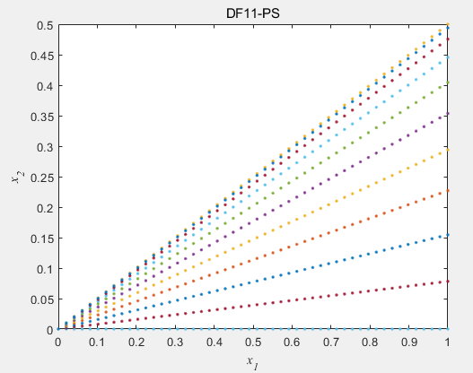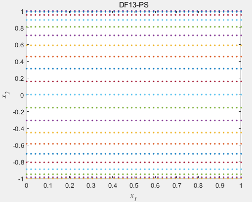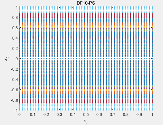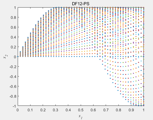 文件夹内包含动态多目标测试函数DF10、DF11、DF12、DF13和DF14的PS及PF完整MATLAB代码。