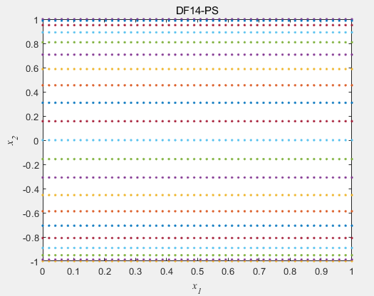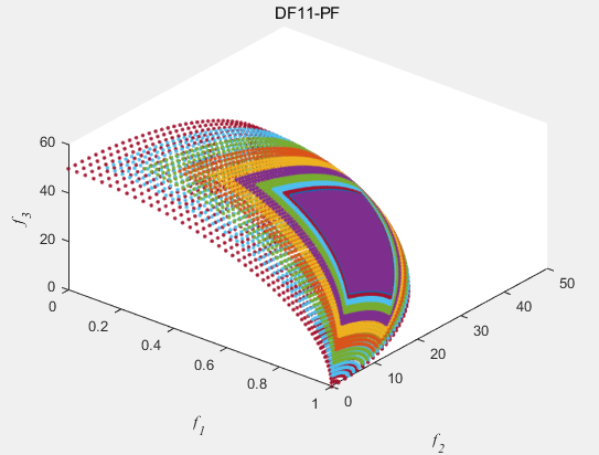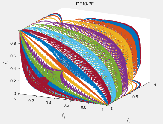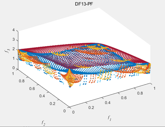 CEC2018共有14个测试函数:DF1-DF14,其中DF1-DF9是两个目标,DF10-DF14是三个目标。