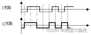 在OQPSK中,其I支路比特流和Q支路比特流在数据沿上差半个符号周期,其它特性和QPSK信号类似。在QPSK信号中,奇比特流和偶比特流的比特同时跳变,但是在OQPSK信号中,I支路比特流和Q支路比特流,在它们的变化沿的地方错开一比特(半个符号周期)。它们的波形如图下图: