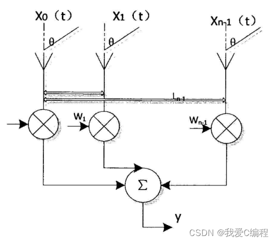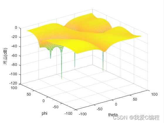功率倒置指的是自适应天线阵具有倒置两个接收信号的功率比 的能力。 功率倒置算法是直接将阵列的输出作为误差信号, 使的均方 误差最小从而实现阵列输出最小。它对输入端的信号(信号和干扰) 均加以抑制, 在波束图上表现为在信号和干扰方向上都产生零点, 零 点的深度和信号的强度有关且信号越强零点越深。 如输入的期望信号 很弱而干扰很强,干扰方向会产生很深的零点从而抑制了干扰信号, 提高了信噪比。