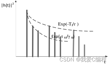S-V的双指数模型可以充分灵活的反应出毫米波信道特征,其中,簇内的每一个径都服从瑞利分布。因此,S-V信道模型的冲击响应可以表示为: