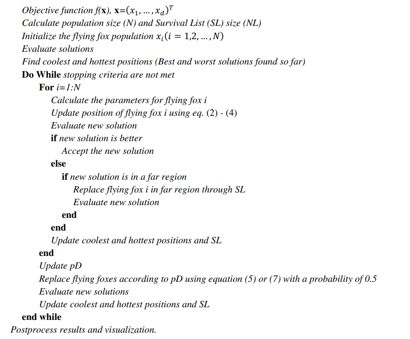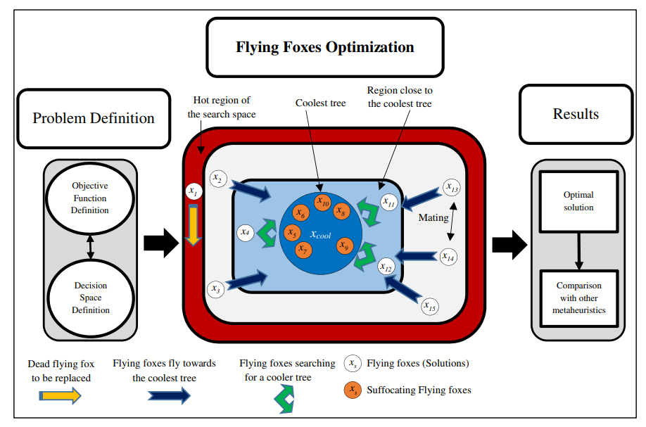 参考文献:Zervoudakis, K., Tsafarakis, S. A global optimizer inspired from the survival strategies of flying foxes. Engineering with Computers (2022). https://doi.org/10.1007/s00366-021-01554-w