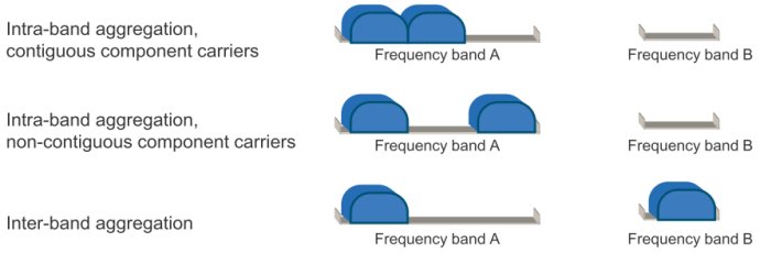 为了高效地利用零碎的频谱,CA支持不同CC之间的聚合(如图1)