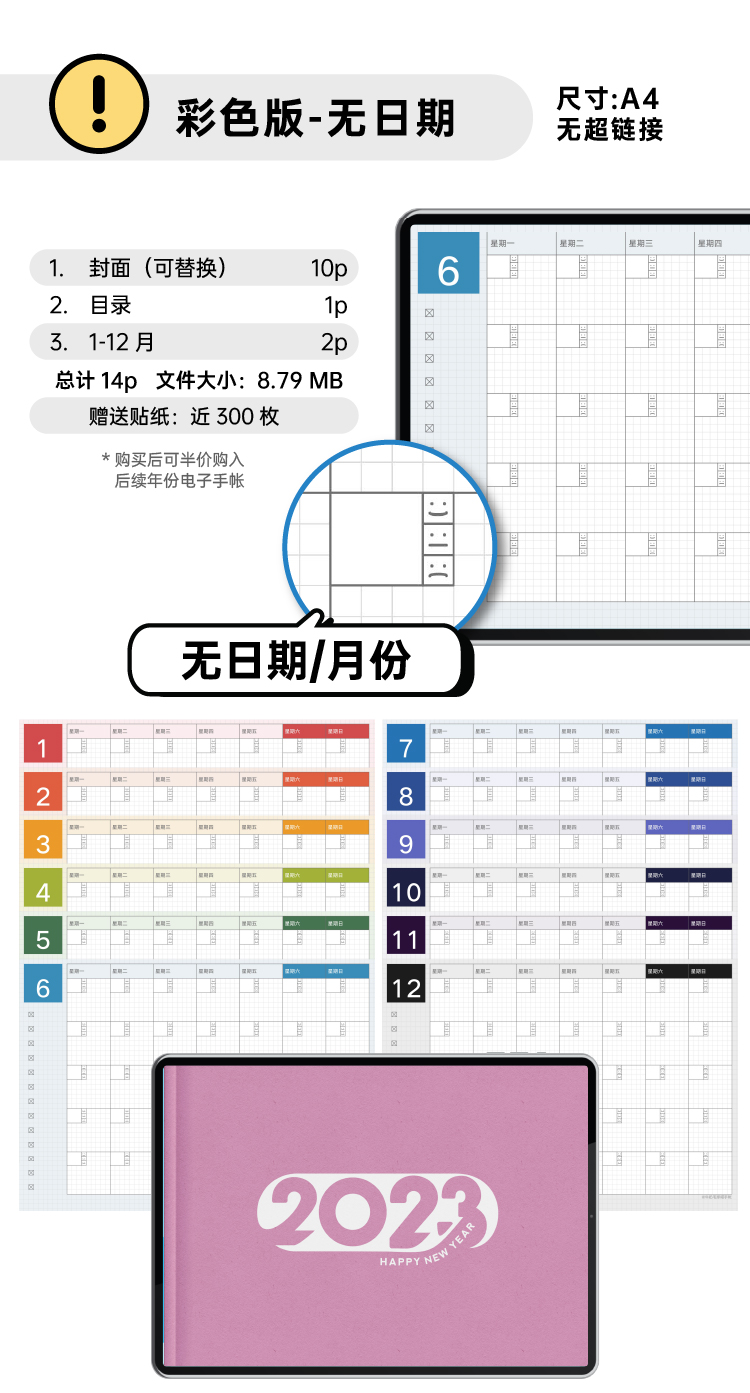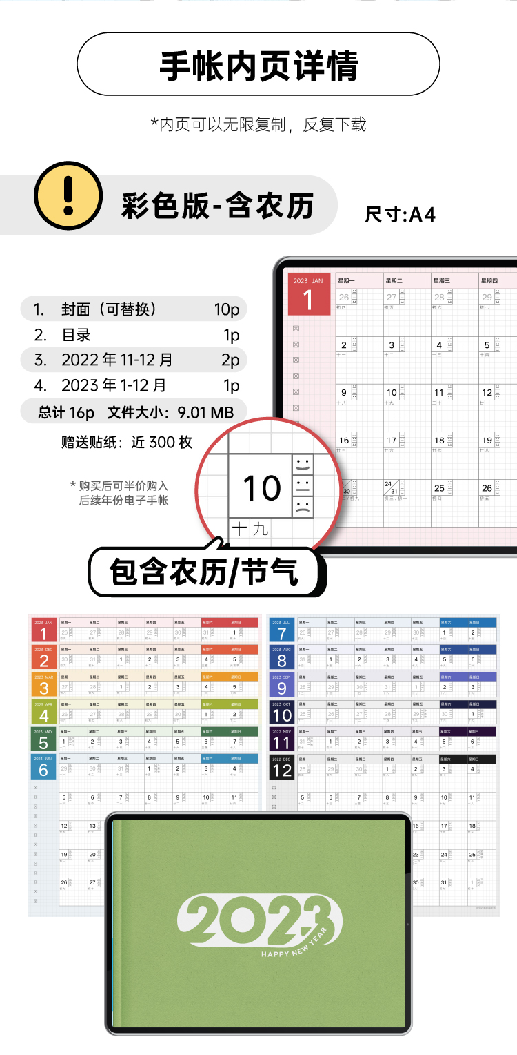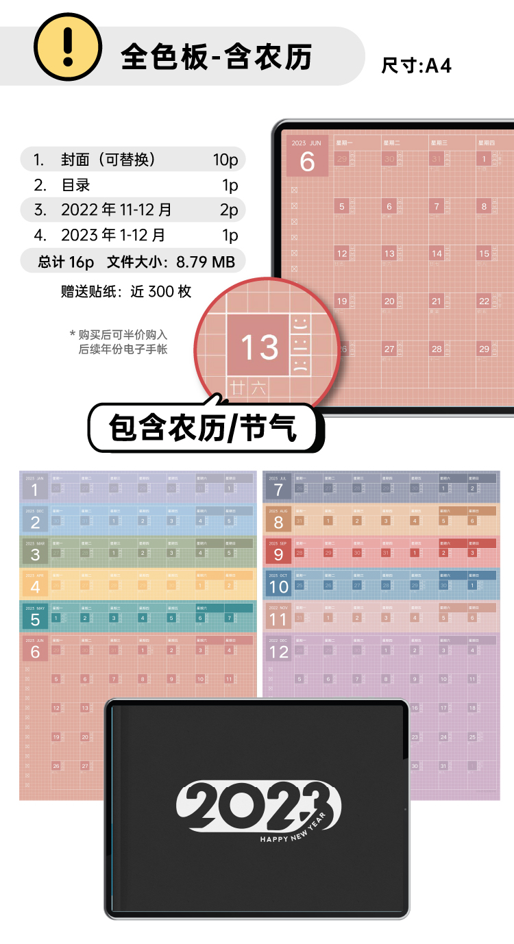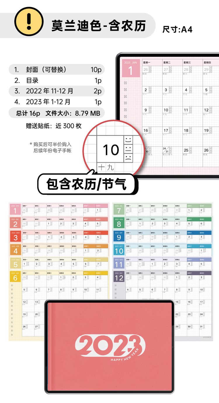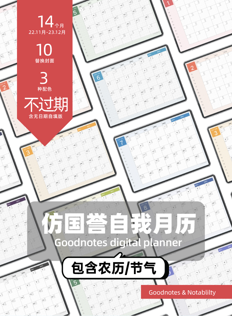 【四版合集】仿国誉自我2023年月历【含农历】goodnotes电子手帐模板-牛奶毛球喵