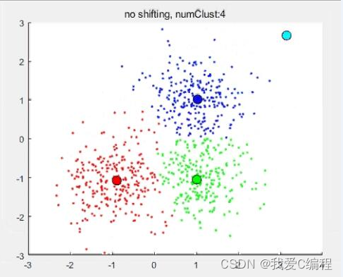 5)重复步骤2,3,4,直到shift很小,记得此时的center。注意,这个迭代过程中遇到的点都应该归类到簇C;