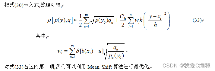 对式(33)右边的第二项,我们可以利用Mean Shift算法进行最优化.在Comaniciu等人的文章中,他们只用平均每帧图像只用4.19次Mean Shift迭代就可以收敛,他们的结果很显示在600MHz的PC机上,他们的程序可以每秒处理30帧352240象素的图像.下图显示了各帧需要的Mean Shift迭代次数.