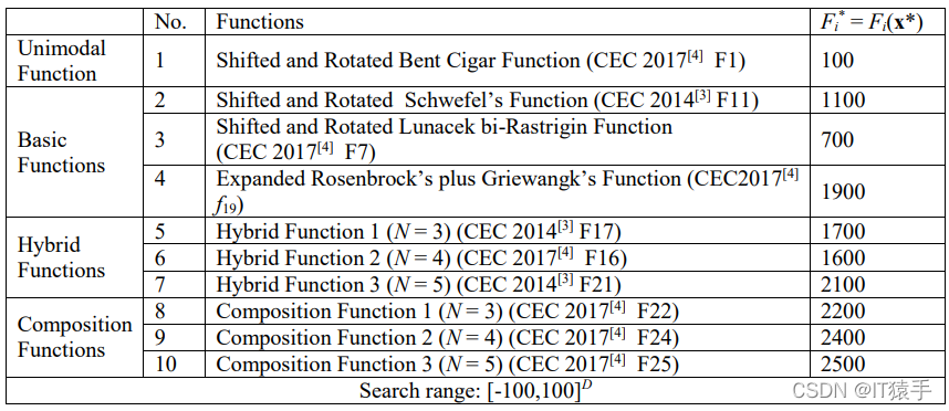 CEC2020共有10个测试函数测试维度包含:2D、5D、10D、15D、20D。CEC2020测试问题随着维度的增加求解极其困难。