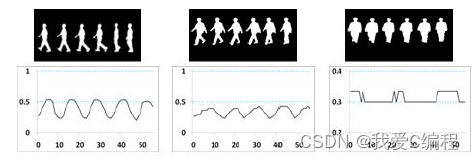 步态周期的判断使用步态剪影的宽、高之比即可,这个值比较容易而且随步态状态呈现周期性变化。