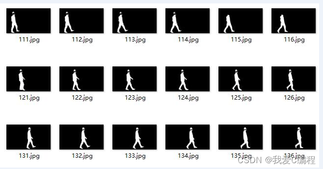 步态能量图(Gait Engery Image, GEI)是步态检测中最非常常用的特征,提取方法简单,也能很好的表现步态的速度,形态等特征。其定义如下: