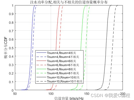 注水算法是根据某种准则,并根据信道状况对发送功率进行自适应分配,通常是信道状况好的时刻,多分配功率,信道差的时候,少分配功率,从而最大化传输速率。实现功率的注水分配,发送端必须知道CSI。当接收端完全知道信道而发送端不知道信号时,发送天线阵列中的功率平均分配是合理的。当发送端知道信道,可以增加信道容量。