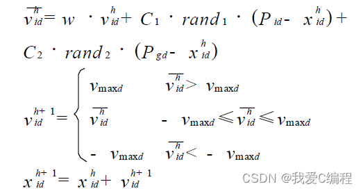 粒子的速度和位置根据以下的公式从h 代更新到h+ 1代: