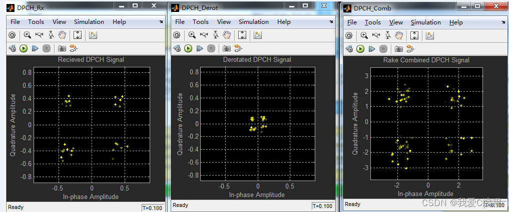 采用QPSK调制,上述为发射接收的星座图。