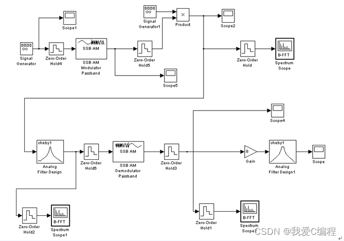 超外差是利用本地产生的振荡波与输入信号混频,将输入信号频率变换为某个预先确定的频率的方法。这种方法是为了适应远程通信对高频率、弱信号接收的需要,在外差原理的基础上发展而来的。超外差收发系统至今仍广泛应用于远程信号的接收,并且已推广应用到测量技术等方面。随着数字计算机硬件及软件的发展,数字计算机的系统仿真也迅速发展起来。数字计算机仿真的特点是精度高、重复性好、通用性强、价格便宜。至今已发展了许多计算机仿真程序包和仿真语言,使用起来特别方便。介绍了超外差单边带接收机的基本原理,然后介绍了MATLAB工作的又是,然后以系统仿真软件MATLAB中的Simulink软件包为工具,完成了通信系统超外差单边带接收机的仿真,并得到了完整的仿真结果,总结出了利用Simulink进行仿真的基本方法和步骤。