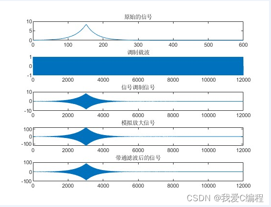 m基于MATLAB的通信系统仿真,包括信号源,载波信号,放大器,带宽滤波器,接收端包括放大器,带宽滤波器,载波解调,低通滤波器等.包括程序操作录像+word文档