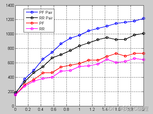 从上面的仿真结果可以看到,配对的PF方法的容量大于配对的RR方法的容量大于一般PF方法大于一般RR方法。