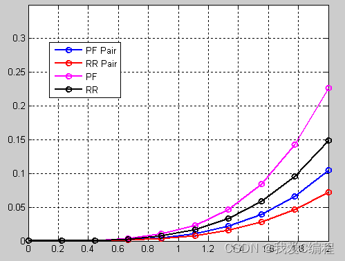 从上面的仿真结果可知,当用户到达率标高的时候,PF算法具有最大的丢包率,其次为RR算法,然后是配对后的PF算法,配对后的RR算法丢包率最低。