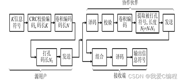 从上面的结构可知,整个卷积编码的结构可由CRC校验,卷积编码,打孔组成,其中打孔的作用就是讲卷积编码后的码率变为所需要的码率进行发送。