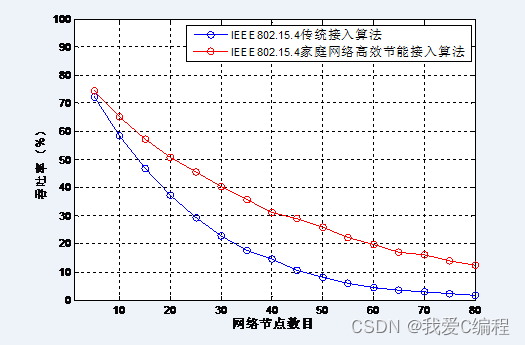 当节点数目越来越多的时候,由于对信道的竞争的越来越激烈,单个节点接入信道成功从而发送数据的概率会随之下降。那些没能够竞争到信道的节点就会进入新的退避过程。整个网络的总体功耗在这个过程当中为持续上升状态。这里,我们通过算法的改进,来降低接入的能耗: