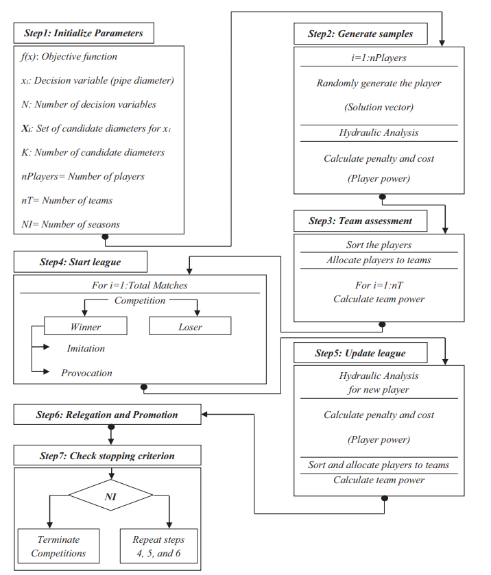 % 足球联赛竞争算法 Naser Moosavian,Babak Kasaee Roodsari. Soccer league competition algorithm: A novel meta-heuristic algorithm for optimal design of water distribution networks[J]. Swarm and Evolutionary Computation,2014