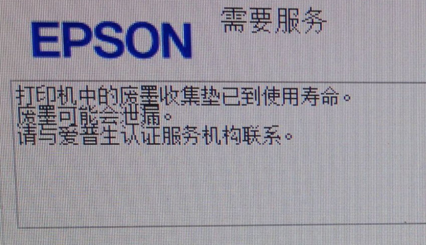 打印机用久了会报警说废墨收集垫需要更换,如下所示。有人把收集垫的盒子叫做墨仓。