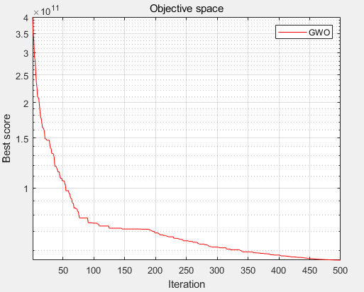 求解CEC2013中F1,迭代500次,求解收敛图